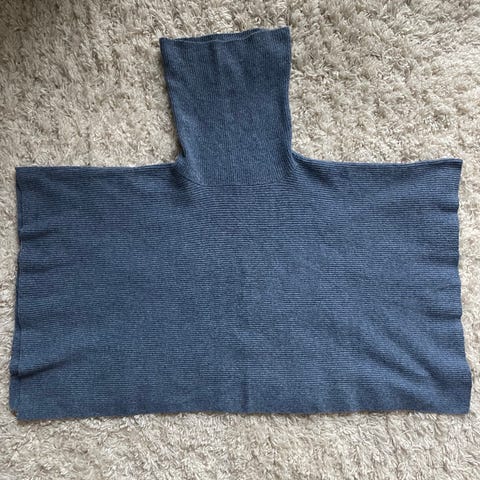 Selger ny poncho i mørk blå farge. Onesize, jeg bruker medium og er 177 cm høy. Ble kjøpt til spesiell anledning, og har ligget skapet siden jeg oftere bruker topper med armer som passer inni jakker. Fra røyk- og dyrefritt hjem.