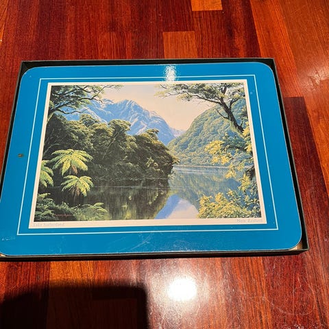 6 stk. Bordbrikke + 6 stk. Glassbrikker.