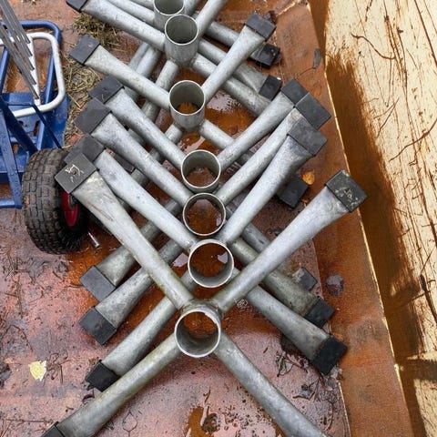 Selger en pakke med hindermateriell. 12 støtter og 20 bommer. Det er en del år, alt er i treverk, noe er i dårligere stand, men alt er pdd helt og fungerer godt. Selges som det er. Gi bud.