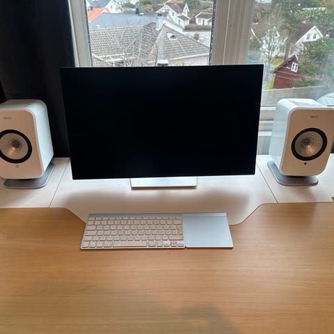 Høyttalerene er kjøpt på Power, og stativet på Amazon. Veldig anvendelige høyttalere med meget god lyd til prisen. Må hentes.