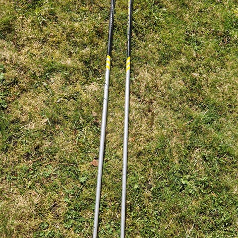 Skistaver i svart og gul farge. Stavene har håndtak med stropp og spisser til bruk på snø. Egnet til langrenn eller turbruk. Lengde og materiale er ikke oppgitt og bør eventuelt måles ved interesse.