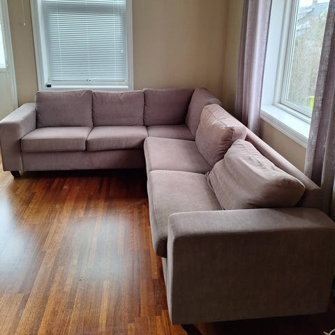 Sofaen er hel og fin, men med noen bruksmerker..