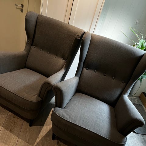«IKEA Strandmon er en populær, tidløs ørelappstol som kombinerer klassisk design med moderne komfort. Den har høy rygg for god nakkestøtte, myke linjer og solide materialer, ofte med 10 års garanti. Stolen er designet for å være komfortabel og slitesterk, og kommer i flere tekstiler som fløyel, slitesterkt stoff og skinnimitasjon.»