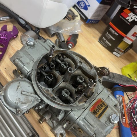 Low rise 454 b.b.chevy alu.innsug. Innsuget har en liten skade i skilleveggen under forgasseren, men det betyr ingenting. Det går an å vannpolere det, og da blir det som nytt, gjorde det nettopp med et annet innsug. Kom med bud.
