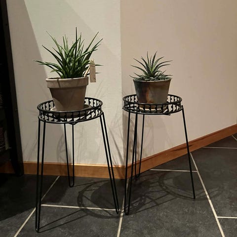 Ca. 40 cm høye . Kjøpt på Ambiplants. Veldig god kvalitet. Ser ekte ut. Jeg satt dem i jord med leccakuler, men de kan stå for seg selv , har en feste som ser ut som liten potte. Røykfritt hjem.