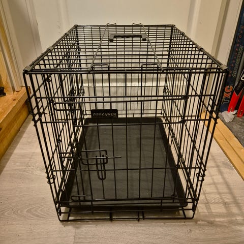 Dogman hundebur i metall i fargen svart. Buret har gitterkonstruksjon med avtakbar bunn i plast som gjør det enkelt å rengjøre. Egnet som innendørs hvile- og soveplass for hund. Kan brukes til transport eller som fast plass i hjemmet, avhengig av hundens størrelse og behov.