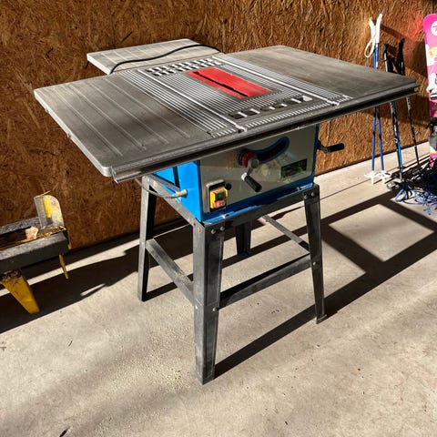 Bordsagen har også en elektronisk mykstart som både beskytter motoren og gir en kontrollert oppstart. På hver side er det uttrekkbare materialstøtter, som gir en stor arbeidsflate. Montert på frittstående stativ i metall for stabil plassering under bruk.