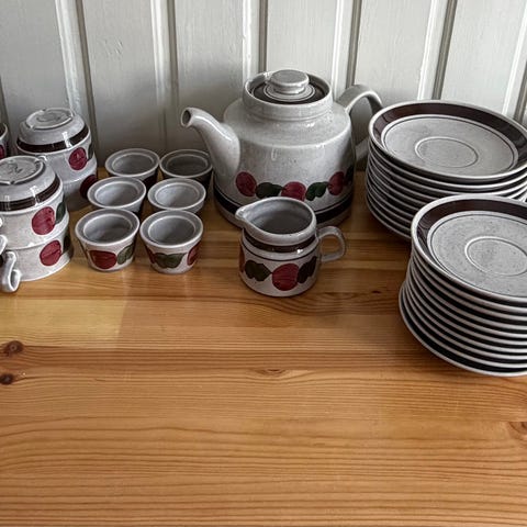 Det kan selges samlet eller i deler. Prisen kan vi bli enig om, hvis det er noen deler du trenger for å komplettere ditt eget servise.