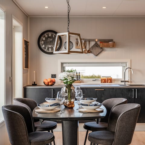 Bordet gir god plass til mange rundt bordet, og med ileggsplaten blir det ekstra romslig når man får gjester.