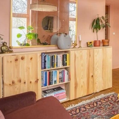 Selger fire grønnmalte Ivarskap i furu fra IKEA. Alle er i god stand, men to mangler bakplate. Dette syns ikke så lenge skapene står inntil veggen.