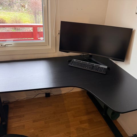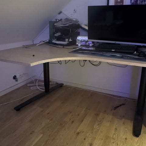 Kontorpulten selges. Platen er foliert sort, originalt trehvitt under folien.