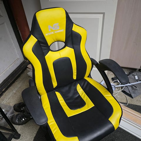 gamingstol fra LEGEND gir deg støtte og stil gjennom hele spillet. Med funksjoner som trinnløs vippemekanisme kan du sitte komfortabelt over lengre tid. Setet er trukket i svart kunstskinn med grå detaljer. B70 × H111-121 × D70