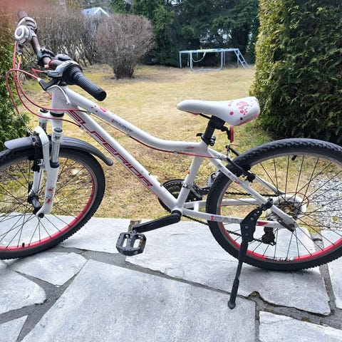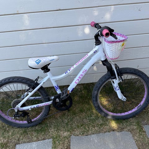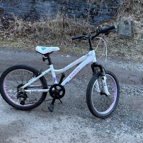 DBS barnesykkel med 20" hjul. Sykkelen har hvit ramme med fargedetaljer og rette styre. Utstyrt med gir bak, felgbremser og skjermer. Egnet som barnesykkel til hverdagssykling og turbruk på vei og lett grus.