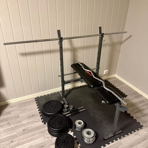 Leg press i god stand selges. Har vært brukt på et fysikalsk institutt. Alt fungerer som det skal.