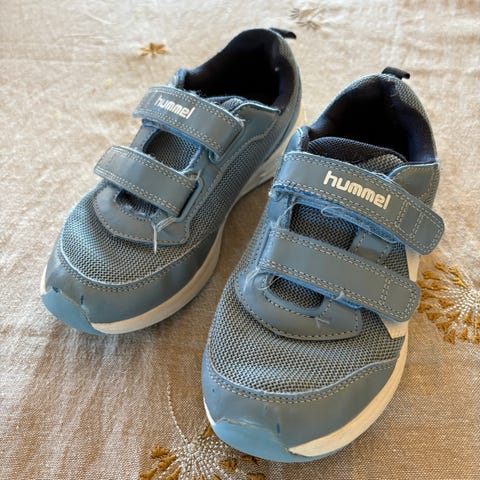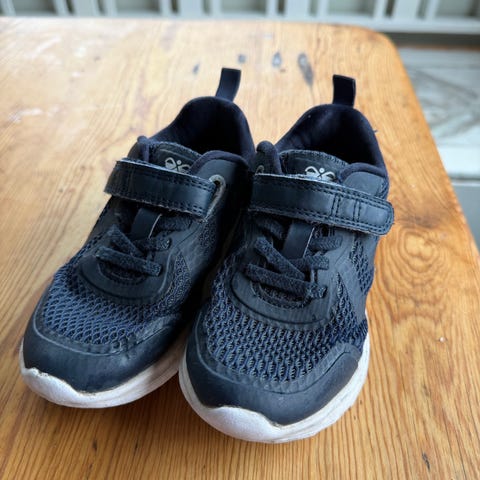 Hummel joggesko for barn i størrelse 34, unisex. Skoene er i mørk blå farge med overdel i pustende mesh-materiale og syntetiske detaljer. Modellen har elastiske lisser kombinert med borrelåsrem for enkel av- og påkledning. Yttersålen er i gummi for godt grep. Egnet som hverdagssko og til lett aktivitet for barn.