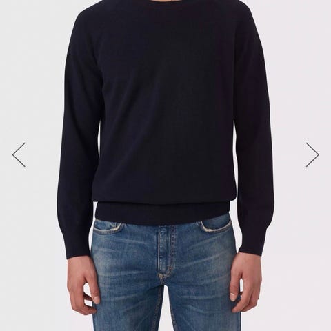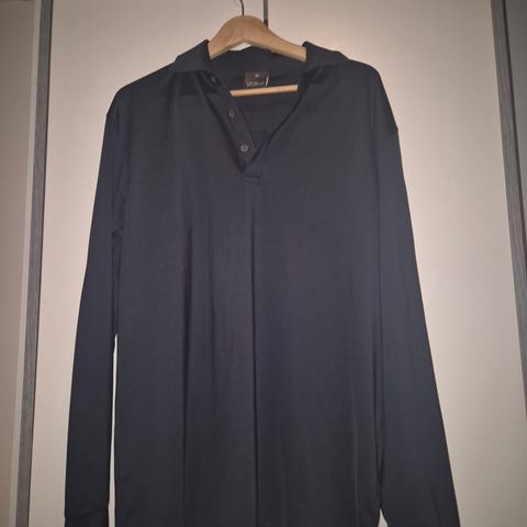 Oscar Jacobson genser for herre i størrelse XL. Genseren er blå og strikket i ull, med høy hals/rullekrage. Materialet er 100 % ull, egnet for bruk i kjøligere vær. Passer til hverdagsbruk eller mer formelle anledninger sammen med bukse eller jeans.