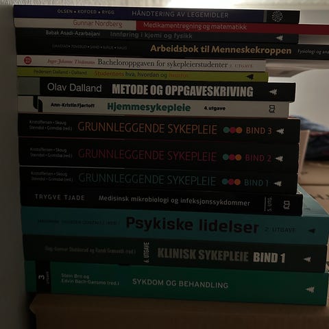 Pensumbøker for sykepleie studenter.