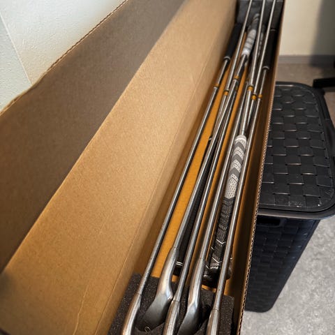 Usikker på alder og modell på køllene. Fine til nybegynner eller for høyt handicap nå som sesongen snart starter.