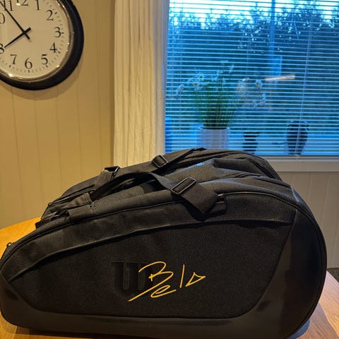 Selger to stk. meget pent brukte Fred Perry Classic Barrel bag i to fargevarianter, én hvit med grønne detaljer og én marineblå med lyse kontrastdetaljer. Veskene har sylinderform, bærehåndtak og justerbar skulderrem.