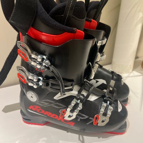 Tecno Pro alpinstøvler i svart plastskall med grå detaljer. Str 31,5 tilsvarer str 47