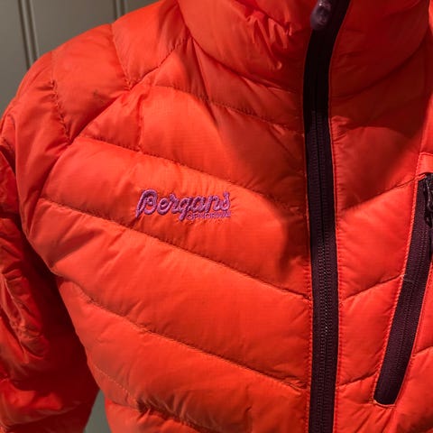 Rab dunjakke for dame i størrelse 38. Jakken er blå med quiltet mønster og hette. Ytterstoff i lett materiale med dunisolasjon. Glidelås i front og glidelåslommer i siden. Passer som ytterjakke til hverdagsbruk og ulike utendørsaktiviteter.