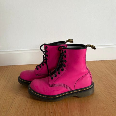 Originale boots kjøpt i Dr. Martins butikk i London. Kun brukt 1 gang, men de passer dessverre ikke min fot. Fargen finnes ikke mer, og ny pris i andre farger er over 2000 kr.