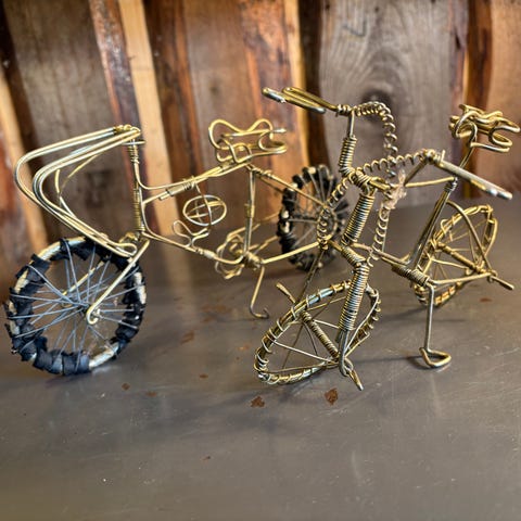 Gammel sykkel fra 60/70 tallet uten gir. Fin til å pynte med blomster.