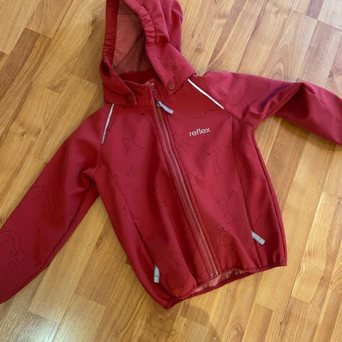 Reflex jakke størrelse 140. Avtagbarhette, glidelås i front og glidelåslommer i sidene. Refleksdetaljer. Innsiden har mykt stoff i fleece for økt komfort. Super nå i vår og på høst :) Pent brukt av ett barn, trenger en vask men kan brukes av mange flere barn!