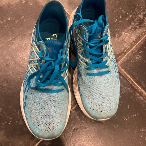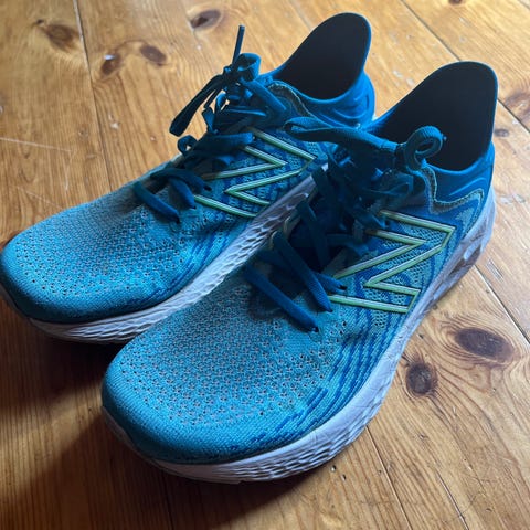 New Balance løpesko i størrelse 40. Modellen er en lett løpesko med pustende mesh-overdel i svart med rosa og oransje detaljer. Skoene har snøring foran og mellomsåle i skum for demping. Yttersålen er i gummi for grep mot underlaget. Egnet til løping og annen trening utendørs eller innendørs.