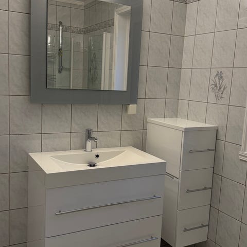 Obs! Blandebatteri følger ikke med, heller ikke oppheng toalettrull.