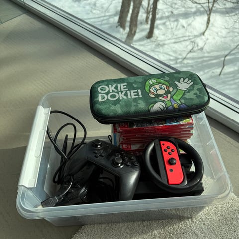 I tillegg følger det med en rød Mario-inspirert håndkontroller, Joy-Con-håndleddsreimer og Super Mario Wonder spill ☺️