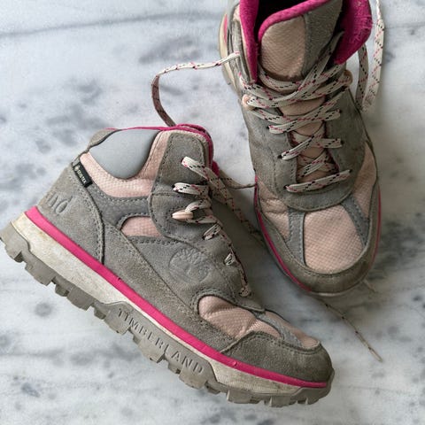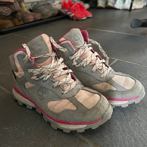 Timberland tursko for barn i størrelse 31, til jente. Skoene er i grå og rosa farge med snøring og kraftig yttersåle som gir godt grep. Overdelen består av tekstil og syntetiske materialer. Modellen har halvhøyt skaft som gir støtte rundt ankelen. Egnet som hverdagssko og til tur og lek utendørs.
