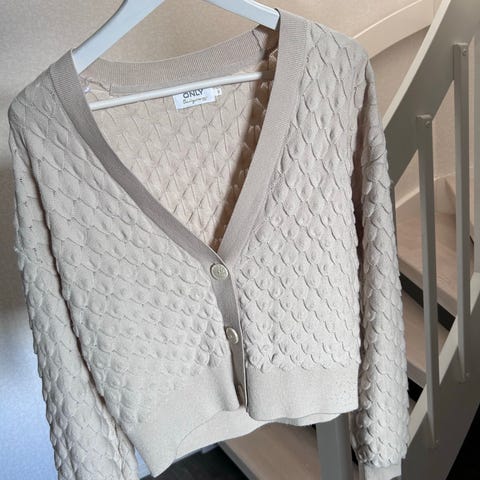 Feminin lys gul jakke fra Gestuz! Nydelige ermer med perlepynt. En perleknapp, og noen perler følger med.