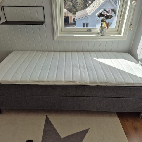 Rammemadrass, modell Skårer fra IKEA, 120 x 200 cm., gis bort mot rask henting. Pent brukt, har fungert som gjesteseng, aldri brukt uten overmadrass. Overmadrass følger ikke med.