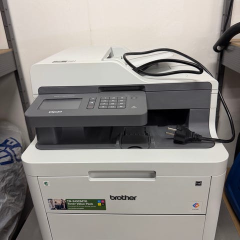 Brother multifunksjonsskriver, laser i grå utførelse. Printer, skanner og kopimaskin. Fungerer fint.