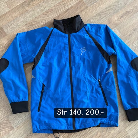 Jakken har hel glidelås foran og to glidelåslommer. T‑skjorten har rund hals og er laget i lett materiale egnet for trening og aktivitet.