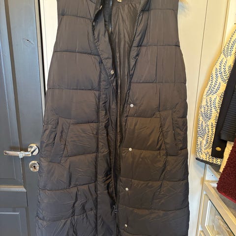 Solid grov glidelås, kan åpnes fra begge ender, lommer i sidene, høy krage som luner godt og stor deilig hette.