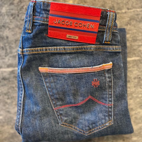 Jacob Cohën er kjent for jeans i topp kvalitet med luksuriøse detaljer – nypris ligger ofte på 5 000–7 000 kr.