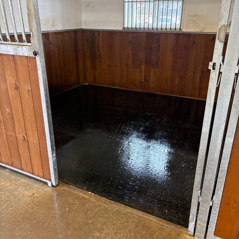 Høyde er ca 220cm, dørbredder 140cm og fronter 170cm. Stallen ble bygget i 1987 og innredningen ble laget på stedet. Må hentes.