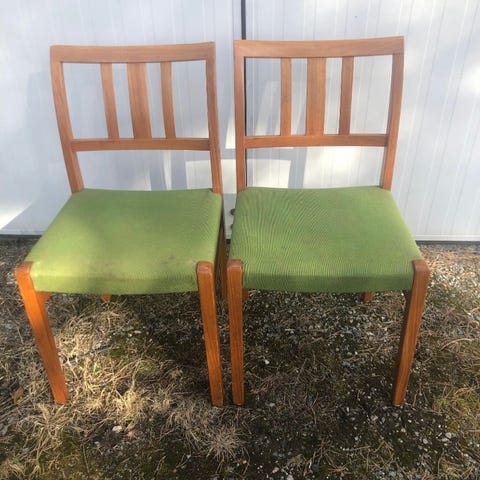 Stolene fremstår som renoverte med små mangler/skjønnhetsfeil.