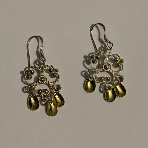 Sylvsmidja øredobber i sølv med gullbelagte dråper/skåler.