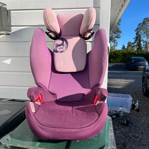 Cybex barnesete i lilla farge. Noen flekker. Ikke prøvd å vaske vekk. Kilo 15-36