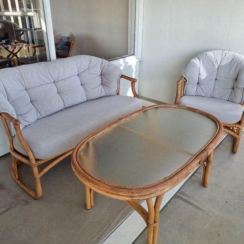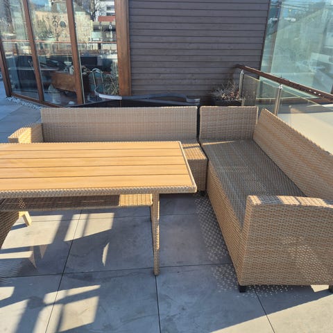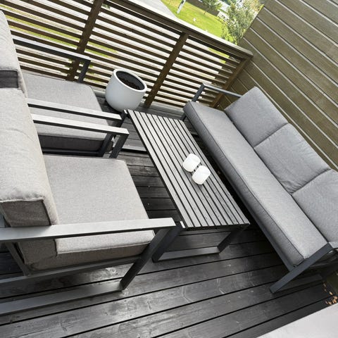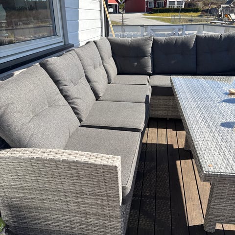 Flott loungesett i klassisk stil selges. Passer svært godt på terrasse, i hagestue eller under overbygg.