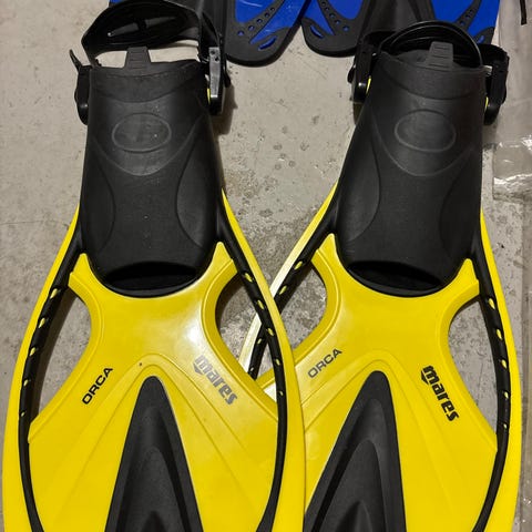 Scubapro Jet Sport svømmeføtter i blå og grå farge. Åpen hæl med justerbare reimer og stiv bladkonstruksjon som gir god fremdrift i vannet. Egnet til snorkling og dykking. Plast- og gummimateriale som tåler bruk i både basseng og sjø.
