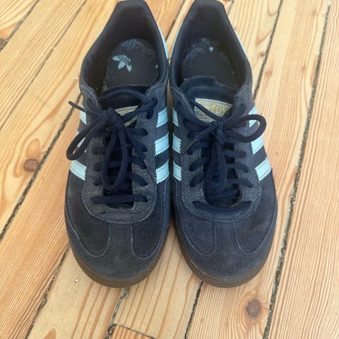 Adidas Gazelle joggesko unisex i størrelse 39. Skoene har overdel i blått materiale med mintgrønne Adidas-striper og detaljer, samt yttersåle i gummi med mønster for godt grep. Modellen er lav og snøres med lisser.