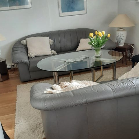 Noen striper i skinnet. Se øverste del på rygg. Litt falmet. Den er produsert på Ekornes