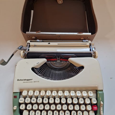 Triumph Norm and Perfekt skrivemaskin, bærbar modell i beige farge. Mekanisk skrivemaskin med klassisk tastaturoppsett og bærekoffert i hardplast/metall. Leveres med original bruksanvisning for Triumph Norm and Perfekt Portable Typewriters. Egner seg til skriving, hobbybruk eller som innredningsobjekt.