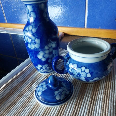 Blått og hvitt keramikksett