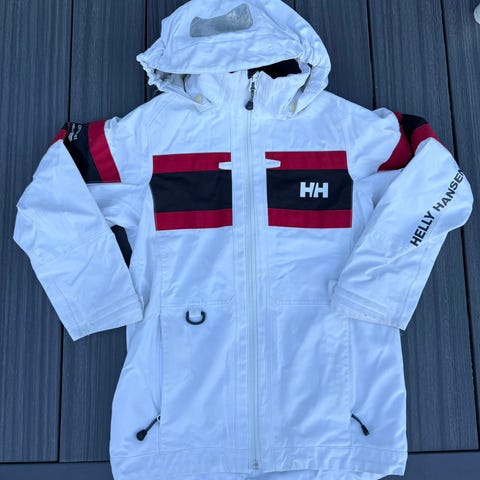 Klassisk seilerjakke fra Helly Hansen, blå str 140. Fremstår relativt pen, normal bruksslitasje. Den ene snoren helt nederst har mistet sin elastisitet. Nyvasket. Kan gjerne sende 📮