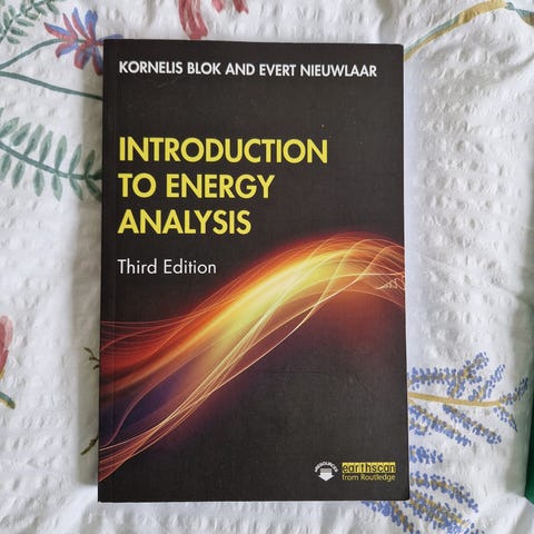 Introduction to Energy Analysis av Kornelis Blok. Boken dekker grunnleggende prinsipper og metoder for energianalyse, inkludert begreper knyttet til energibruk, effektivitet og vurdering av energisystemer. Egnet som fagbok/tekstbok innen energi, miljø og tekniske fag på høyere utdanningsnivå.